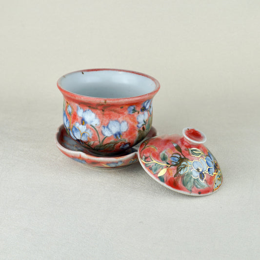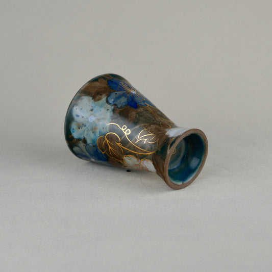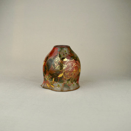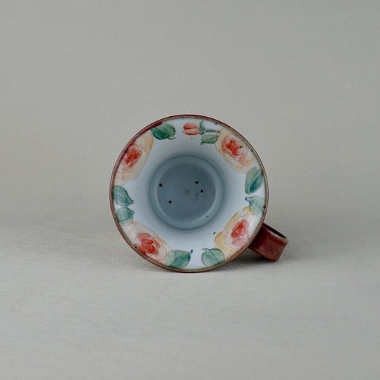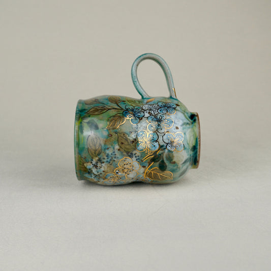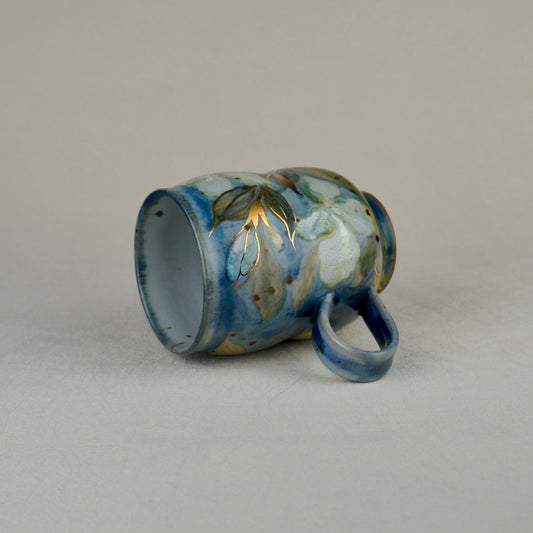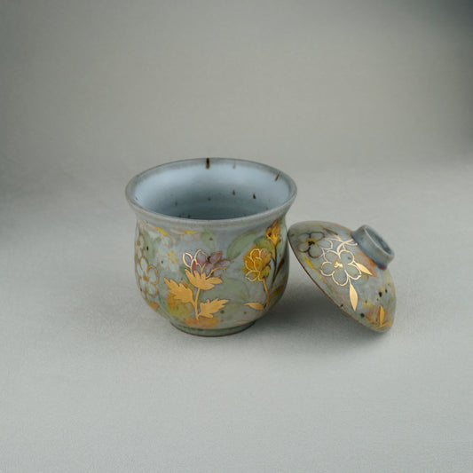 This Golden Bloom pottery collection from Six Pottery Studio features hand painted underglaze floral designs. Delicate gold accents on petals and branches create a distinctive vintage elegance and sophistication.