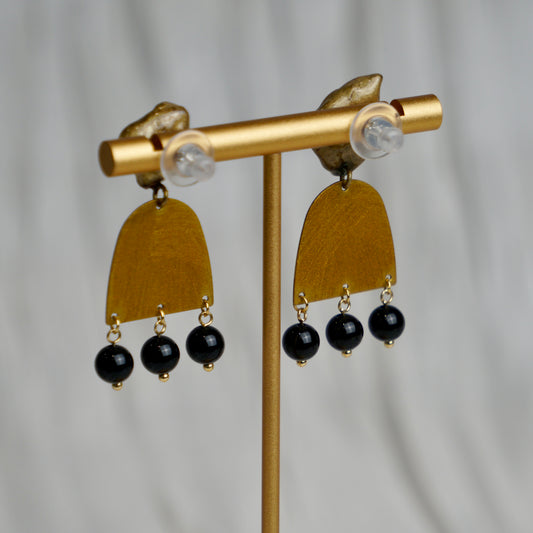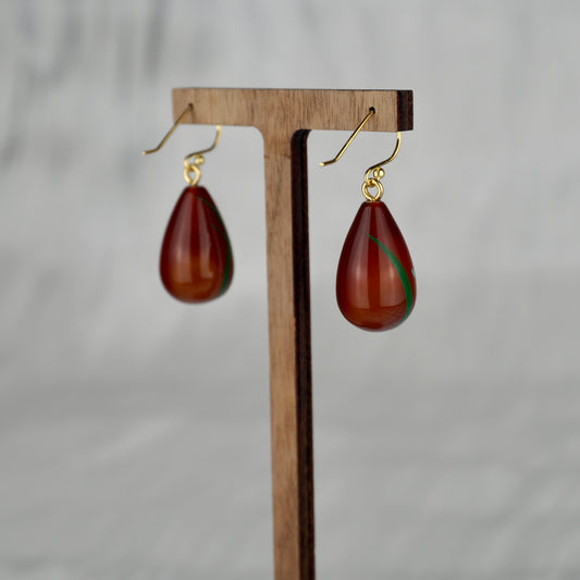 Lacquer Green Orchid Brown Agate Stone Stud Earrings