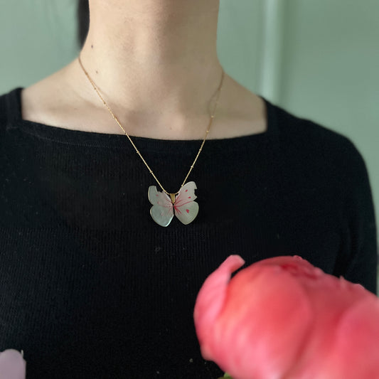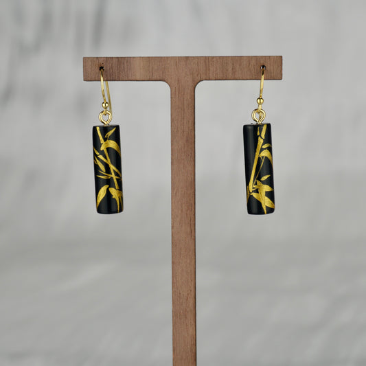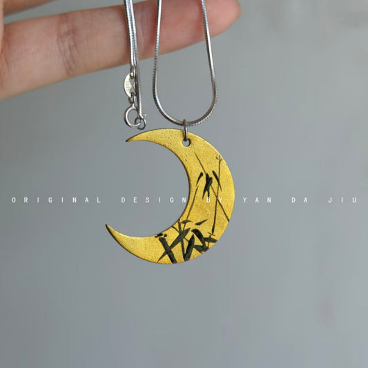 Lacquer Gold Silver Bamboo Leaves Crescent Pendant Necklace