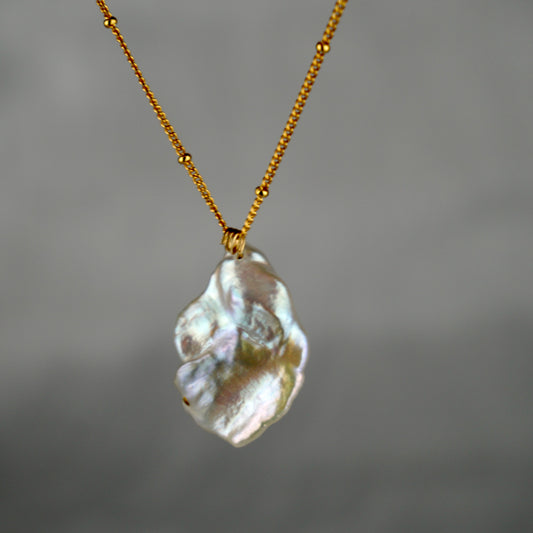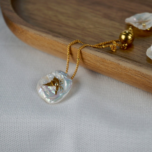 Lacquer Golden Butterfly Baroque Pearl Necklace