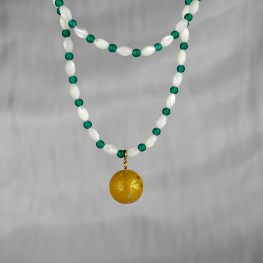 Lacquer Green Agate Shell Golden Butterfly Bead Purple Necklace