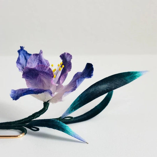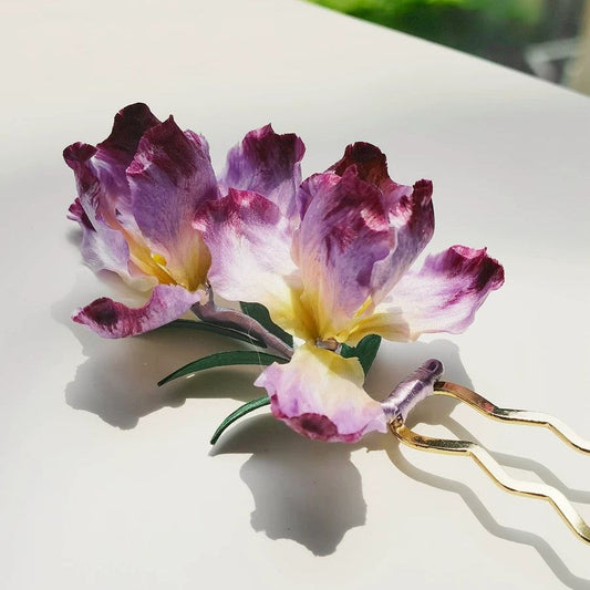 Purple Iris Silk Velvet Flower Hairpin
