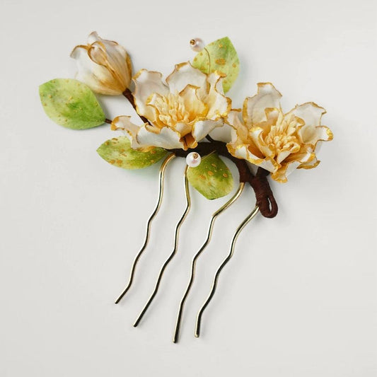 White Camellia Silk Velvet Flower Hairpin
