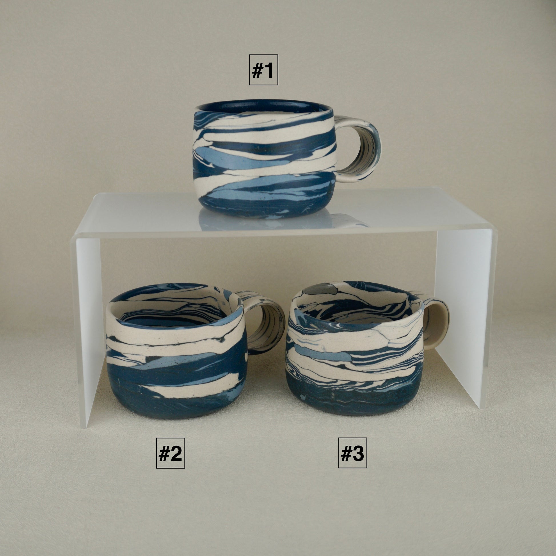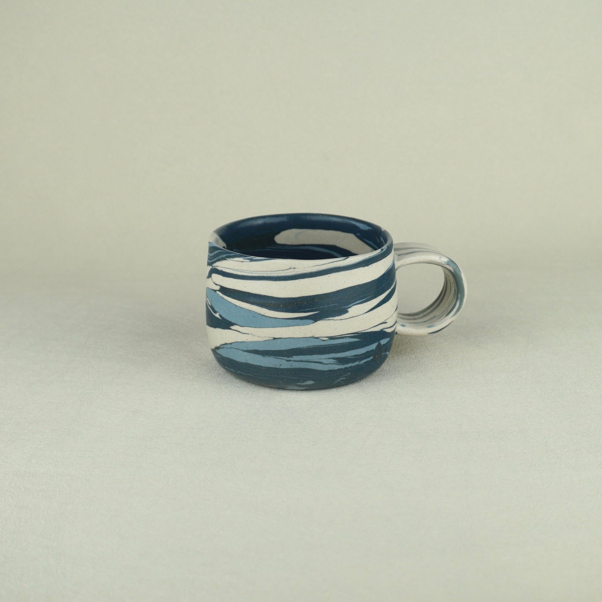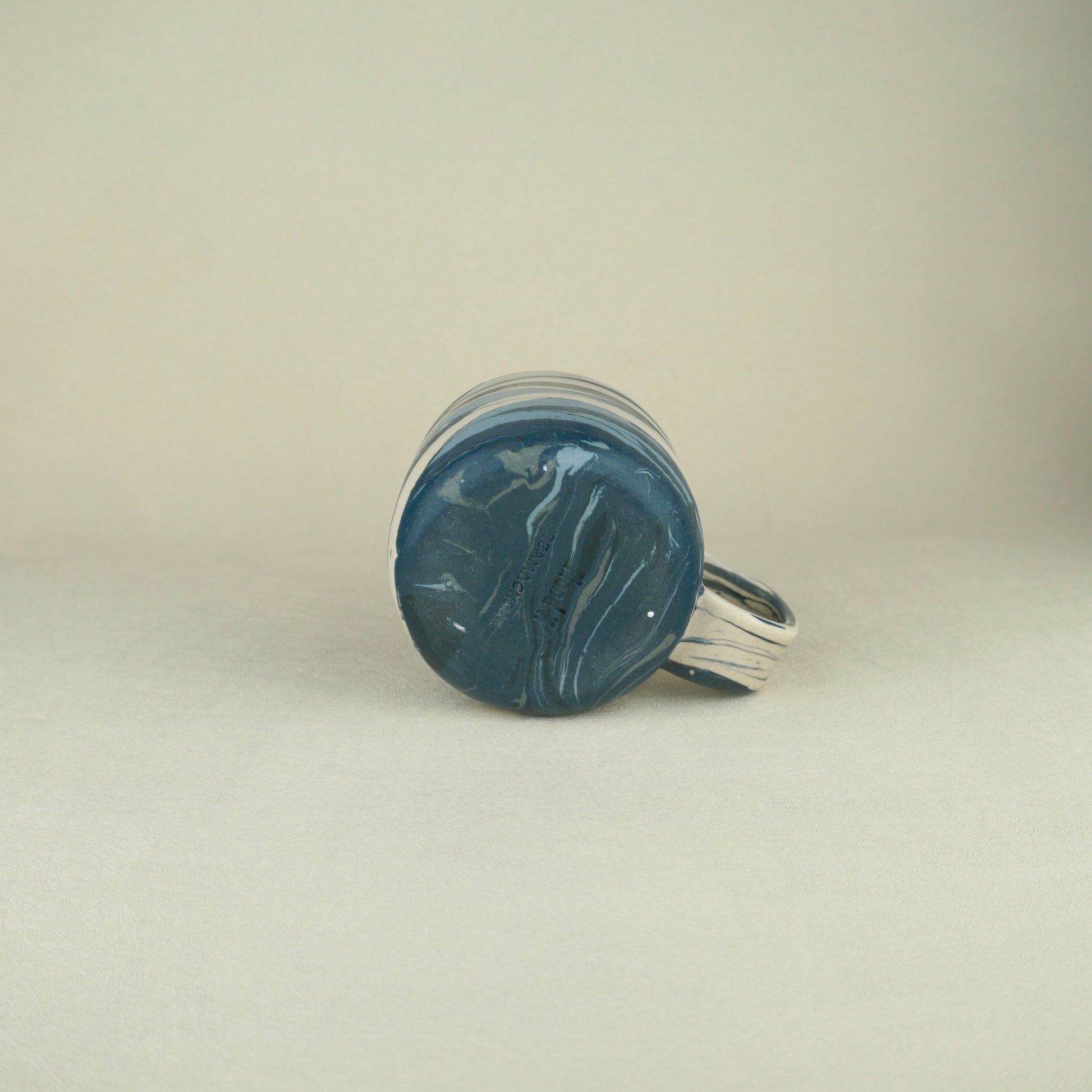 Blue and yellow clay come together to create an intricate and striking pattern.